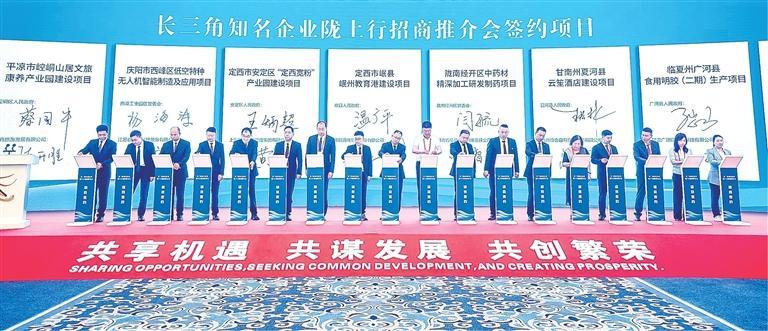 長(zhǎng)三角知名企業(yè)隴上行招商推介會(huì)簽約現(xiàn)場(chǎng)。