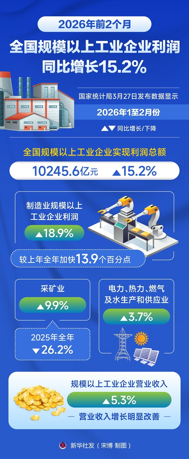 國家統(tǒng)計局3月27日發(fā)布數(shù)據(jù)顯示,1至2月份,全國規(guī)模以上工業(yè)企業(yè)實現(xiàn)利潤總額10245.6億元,同比增長15.2%。