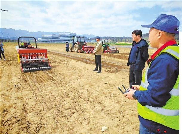 工作人員演示遙控農(nóng)機(jī)作業(yè)場(chǎng)景。