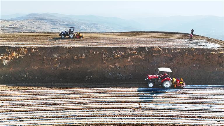 新型農(nóng)機(jī)具在定西梯田中作業(yè)。